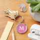Create your own custom, personalised, modern, cool, chic, trendy, simple, minimalist, stylish, elegant white monogram on girly pink background, round silver coloured metal keychain / keyring. Simply type in your initial / monogram, to customise. While you add / design, you'll be able to see a preview of your creation, throughout. Makes a great gift for birthday, graduation, fathers day, mothers day, christmas, holidays, wedding, marriage anniversary, valentines day, and more, for your loved ones, kids, mum, dad, wife, husband, girlfriend, boyfriend, grandparents, family and friends.