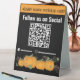 Create your own QR signs for pumpkin patch counters and to place them around the pumpkin farm. Encourage guests and customers to follow you on social media. If you are starting a pumpkin patch for the first time then you need consistent branding with pumpkin banners, signs, and even menus for your fall cafe.