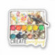 A sticker featuring the design "create something". The artist's own vintage watercolor palette accompanied by the words "create something". "Encouraging creativity in all areas of life is a passion of mine. I want to inspire people to live creatively every day". - Renée