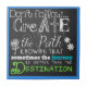 Our Create the Path ceramic tile features a text design using various fonts of white on a black chalkboard look background with a pop of blue for colour with a blue matching border! Text reads "Don't follow...Create the Path knowing that sometimes the journey is better than the Destination"!