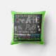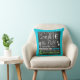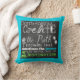 Create the Path Motivational chalkboard look pillow with white text design on a black chalkboard look background with a pop of colour in blue and green and a border of blue on one side, green on the reverse side. Text reads "Don't follow...Create the Path knowing that sometimes the journey is better than the Destination"!