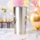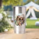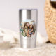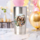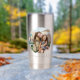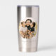Create your own custom photo insulated tumbler. This stainless steel tumbler cup features two of your favorite pictures in a circle shaped watercolor brush stroke frame and personalized text for any occasion. A great gift for family and friends or your own photo memory keepsake.