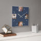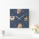 Modern custom clock features 4 square photos at the 12, 3, 6, and 9 o'clock positions on a navy blue background. Grey dashes mark the other hour positions around the clock. Easily replace the sample images with your own in the sidebar.