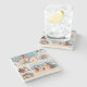 The coasters are gorgeous, a quality feel and heavy weight. They look like a precious archeological find. A rustic stone juxtaposed with a modern floral black and white print. I like the way the print goes slightly imperfect on the cut stone edges giving them a kind-of natural beauty.