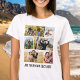 Create your own custom photo t-shirt featuring 6 of your favourite pictures in a simple photo collage grid alongside personalised text in modern typography.