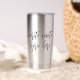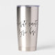 Create your own custom quote thermal tumbler. Features minimalist calligraphy typography.