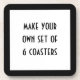 Make Your Own set of six coaster by adding a photo , image of an art work, a saying, your initials or monogram