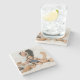 The coasters are gorgeous, a quality feel and heavy weight. They look like a precious archeological find. A rustic stone juxtaposed with a modern floral black and white print. I like the way the print goes slightly imperfect on the cut stone edges giving them a kind-of natural beauty.