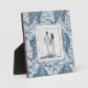 Made to look dimensional, a steel blue and white tropical leaf plant pattern creates a beautiful frame for your favourite photo on this tabletop plaque with a built-in easel. The image is put directly on the hardboard panel for a stunningly crisp image with an easy wipe clean surface. Great as a gift or to display your favourite photo in your home. TIP: If using square plaque, you might need to crop your photo to a square BEFORE uploading it for best results.