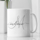 Create your own personalised coffee mug with your custom handwritten name and monogram. To edit this design template, change the text fields as shown above. You can easily add more text or images, customise fonts and colours.