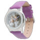 The watch looks exactly as depicted. I was especially pleased with the watch band, which is a nice quality, supple leather. I point this out because an option, which was sold out, was with a multi-colored but clearly plastic band. This is the better choice, in my view.