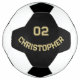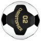 Create your own custom, personalised, stylish faux gold typography / script on black background, monogrammed player name and jersey number, hand stitched with care, regulation sized soccer ball / display trophy football. Simply enter the player name and jersey number, to customise. Makes a great gift for birthday, christmas, holidays, new years, and more, for your loved ones, dad, husband, groom, son, brother, granddad, grandpa, grandkids, grandson, stepson, nephew, soccer player, team, club, coach, family and friends.