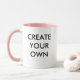 Create your own PINK COMBO MUG from a fully customisable personalised blank template - for coffee, hot chocolate, tea - dishwasher and microwave safe, with colour options on Combo and Ringer mugs: Black, Green, Brown, Navy, Light Blue, Pink, Orange, Yellow, Lime - for photo, image, logo, graphics, text, or your own customised design creation. Create, design and make your own Christmas or birthday gifts, wedding favour, or promotional business product from a fully customisable, personalised custom printed official Zazzle design template. THESE QUALITY MUGS ARE A BULK BUY MULTI-BUY DISCOUNT PRODUCT - buy more and save with regular huge sale savings too! CUSTOM MUG STANDARD DISCOUNTS ARE: 25 mugs = Save $1.00 each. 50 mugs = Save $2.00 each. 100 mugs = Save $3.00 each. 250 mugs = Save $4.00 each. The best quality product and print, range of mugs (giant, classic, white, large, colour ringer & combo, magic, espresso cups ...), and top discounts, make this perhaps the best store to buy promotion mugs or mug gifts anywhere online.