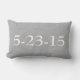 Create your own wedding, anniversary or special date white font pillow - customise and personalise this modern, shabby rustic chic faux french grey burlap linen jute template lumbar pillow.