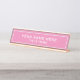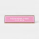 Create your own Desk Name Plate with your name and title. Customise and personalise as desired. White text on an elegant pink background.