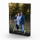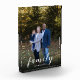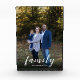 Modern text overlay personalised Family photo, custom script photo block.