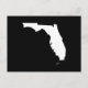 A simple blank modern minimalist design featuring the map shape of the state of Florida in white against solid black.