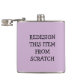 The flask itself is fine. It’s a cheap flask, obviously bought in bulk, however am prepared to overlook that. Given that it is a personalized item, I would have liked to have seen gift boxing instead of the generic packaging. Terrible printing, and/or quality. It’s a cheap, tacky vinyl. It is not cut straight and is also applied in a way that it is overhanging the bottom, causing the glue to catch on items and it will eventually roll and tear, damaging the wrap.