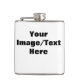 The flask itself is fine. It’s a cheap flask, obviously bought in bulk, however am prepared to overlook that. Given that it is a personalized item, I would have liked to have seen gift boxing instead of the generic packaging. Terrible printing, and/or quality. It’s a cheap, tacky vinyl. It is not cut straight and is also applied in a way that it is overhanging the bottom, causing the glue to catch on items and it will eventually roll and tear, damaging the wrap.