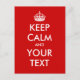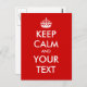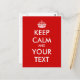 Fully customisable "Keep Calm and Carry On" postcard based on the British WWII poster! You can easily change the text by entering your own in the text fields, and pick your favourite colour for the background! You can even add your own images or change out the existing crown image. Get creative and express yourself! :-)