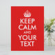 Create a custom birthday party invitation with a parody of the classic poster "Keep Calm and Carry On". You customise or personalised with different font styles, a different background colour, even a different font colour. Right now on the back there is red text while on the front is a red background with white crown and font.