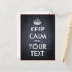 Fully customisable "Keep Calm and Carry On" postcard based on the British WWII poster on a dark aged wood background! You can easily change the text by entering your own in the text fields, etc. You can even add your own images or change out the existing crown image. Get creative and express yourself! :-)
