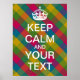 Create your own personal "Keep Calm and Carry On" poster! This is a colourful plaid version, with gold, blue, pink and red. Go ahead and fill your own text in the boxes provided, and feel free to customise as desired (background colour, add images, etc). Great for teachers - make a custom poster for you classroom! Or create your own personal slogan for the office or just your desk. Have fun and enjoy!
