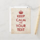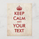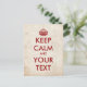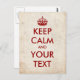 Fully customisable "Keep Calm and Carry On" postcard based on the British WWII poster! This version has dark red text and crown on a vintage paper background. You can easily change the text by entering your own in the text fields, and feel free to add your own images or change out the existing crown image or background. Get creative and express yourself! :-)