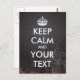 Fully customisable "Keep Calm and Carry On" postcard based on the British WWII poster on a grungy distressed black background! You can easily change the text by entering your own in the text fields, and pick your favourite colour for the background! You can even add your own images or change out the existing crown image. Get creative and express yourself! :-)