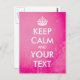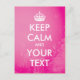 Fully customisable "Keep Calm and Carry On" postcard based on the British WWII poster on a grungy distressed pink background! You can easily change the text by entering your own in the text fields, etc. You can even add your own images or change out the existing crown image. Get creative and express yourself! :-)