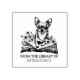 This "From the Library Of" rubber stamp features a chihuahua with a floral book and a custom name.