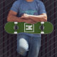 Create Your Own Monogram Template Green and White skateboard. Easily add the monogram initial in white colour on a dark background. choose the deck type from the options menu.