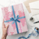 A girly and graphic pattern design made by using your name repeated in different font styles and sizes over a background made of pink maps... because a great idea needs a stylish packaging