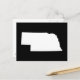 A simple blank modern minimalist design featuring the map shape of the state of Nebraska in white against solid black.