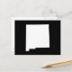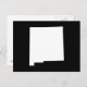 A simple blank modern minimalist design featuring the map shape of the state of New Mexico in white against solid black.
