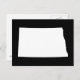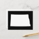 A simple blank modern minimalist design featuring the map shape of the state of North Dakota in white against solid black.