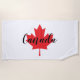 Calligraphy script text design. Typography beach towel at the lake. Create your own personalised Canada or Canadian souvenir gift with a maple leaf design.