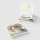The coasters are gorgeous, a quality feel and heavy weight. They look like a precious archeological find. A rustic stone juxtaposed with a modern floral black and white print. I like the way the print goes slightly imperfect on the cut stone edges giving them a kind-of natural beauty.