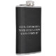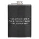 The flask itself is fine. It’s a cheap flask, obviously bought in bulk, however am prepared to overlook that. Given that it is a personalized item, I would have liked to have seen gift boxing instead of the generic packaging. Terrible printing, and/or quality. It’s a cheap, tacky vinyl. It is not cut straight and is also applied in a way that it is overhanging the bottom, causing the glue to catch on items and it will eventually roll and tear, damaging the wrap.