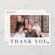 Minimalist modern simple typography custom photo thank you postcard template in simple black and white. Easy to personalise with your picture and details and adapt the text to your needs.