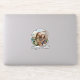 Create your own photo sticker. This custom cut vinyl sticker features one of your favorite pictures in a circle shaped watercolor brush stroke frame and personalized text for any occasion.