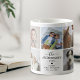 Create your very own special family photo coffee mug. Featuring 9 square photographs, your family name, the year, a cute little heart and a sweet quote. All text can easily be customised making personal and unique to you. Photo Tip: Crop and resize your pictures ensuring that the subject is in the centre before uploading. A wonderful gift for birthdays, christmas or any other special occasion.