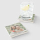 The coasters are gorgeous, a quality feel and heavy weight. They look like a precious archeological find. A rustic stone juxtaposed with a modern floral black and white print. I like the way the print goes slightly imperfect on the cut stone edges giving them a kind-of natural beauty.