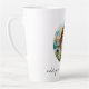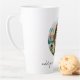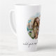 Create your own custom photo latte mug. This coffee cup features one of your favorite pictures in a circle shaped watercolor brush stroke frame and personalized text for any occasion. A great gift for family and friends or your own photo memory keepsake.