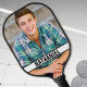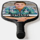 This custom paddle features your own photo printed on both sides in a clean, round layout. Beneath each photo, a wide band runs across the lower portion of the design, giving you a dedicated spot to add a name or short text. It’s a simple way to make the paddle feel personal and one-of-a-kind.