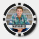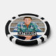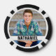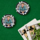 This custom poker chip features your own photo printed on both sides in a clean round layout, giving it a fun and personal touch. Just below each photo, a band curves along the bottom area with space to add a name or short text, keeping the design simple and easy to customise.