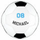 Create your own custom, personalised, stylish black and blue typography / script on white background, monogrammed player name and jersey number, hand stitched with care, regulation sized soccer ball / display trophy football. Simply enter the player name and jersey number, to customise. Makes a great gift for birthday, christmas, holidays, new years, and more, for your loved ones, dad, husband, groom, son, brother, granddad, grandpa, grandkids, grandson, stepson, nephew, soccer player, team, club, coach, family and friends.