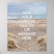 Create your own custom quote poster wall art. Personalise this poster print with modern minimalist typography and tropical beach sand ocean background.