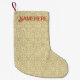 A festive Christmas stocking with a red & gold brocade style damask pattern that you can customise to personalise holiday celebrations!