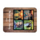 Photo magnet with custom Family photo collage on rustic wood pattern background